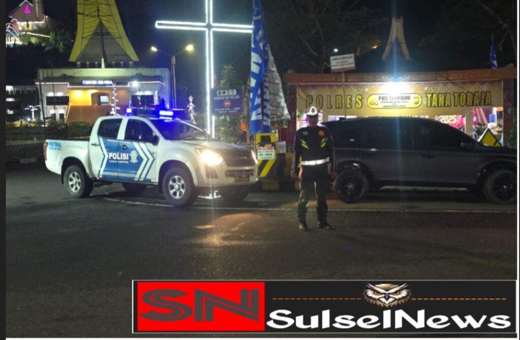 SeputarSulsel.com/TANA TORAJA-Guna mewujudkan kelancaran serta keselamatan pengguna jalan pada malam hari, personel Polres Tana Toraja yang tergabung dalam Operasi Lilin 2025 mengintensifkan pengaturan arus lalu lintas di sejumlah titik strategis, khususnya di Pos Pelayanan Salubarani dan Pos Terpadu Makale Plaza Kolam Makale, Jumat malam (26/12/25).