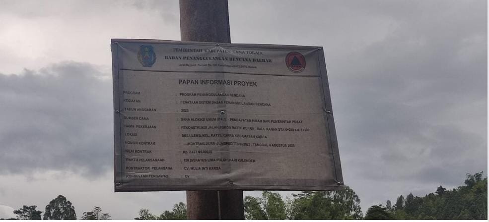 TATOR, SulselNews– Proyek program penanggulangan bencana dengan nama kegiatan Penataan Sistem Dasar Penanggulangan Bencana pada rekonstruksi jalan poros Ratte Kurra–Salu Kanan, di Kecamatan Kurra, dipastikan tidak akan rampung pada tahun anggaran 2025, meski telah menelan anggaran negara sebesar Rp2.427.000.000.